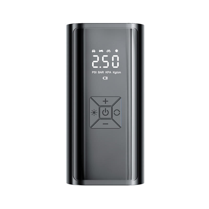- Digital pressure screen (shows “2.50”) (front box) — Allows accurate monitoring during inflation.