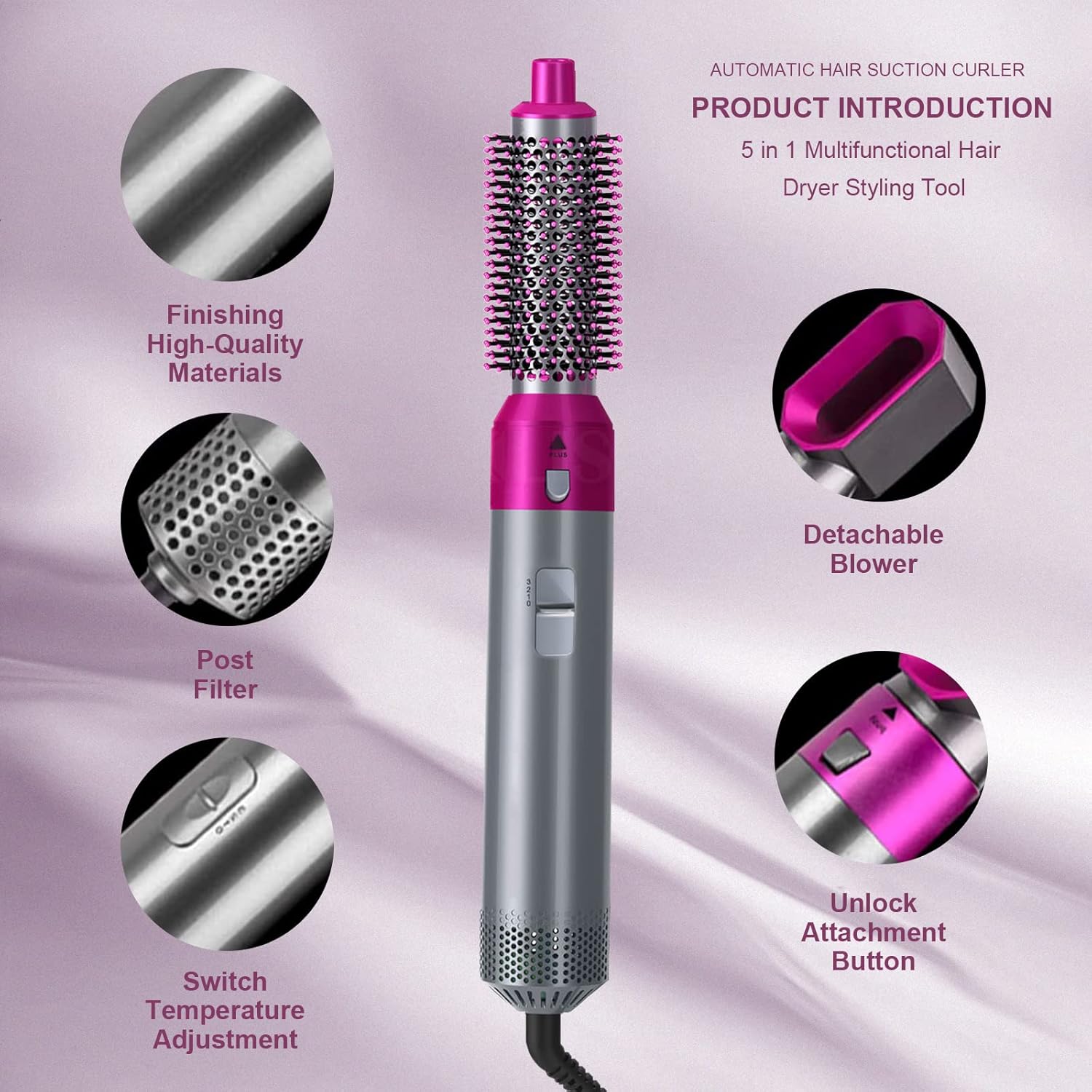 - 5-in-1 multifunctional hot air brush, make hair straighten, volumize, curl, meet everyone's styling demand at home, can help you quickly create the desired style.